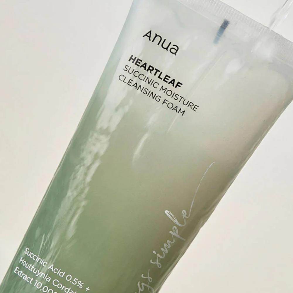 Anua Heartleaf Succinic Moisture Cleansing Foam gently removes dead skin cells, regulates sebum production and keeps the skin moisturised post-cleanse.