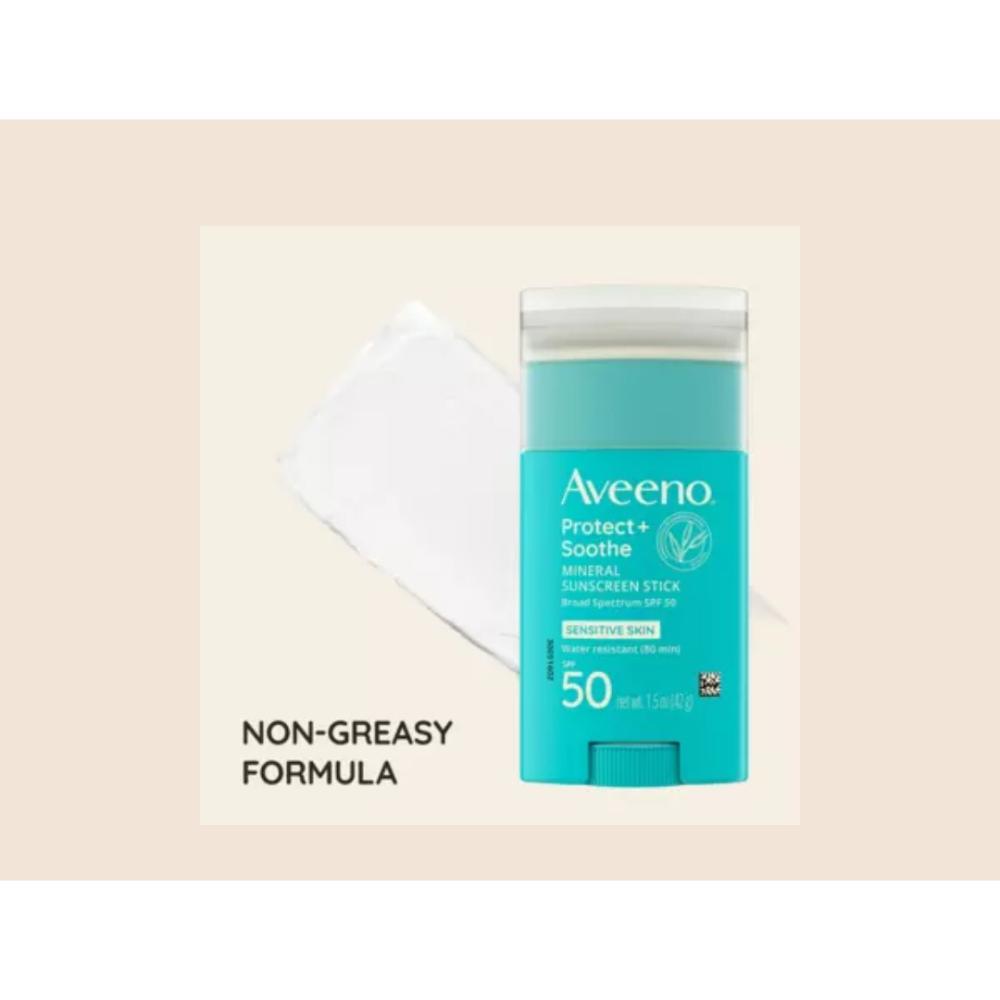 Aveeno Protect + Soothe Mineral Sunscreen Stick for Sensitive Skin SPF 50, 1.5oz/42g