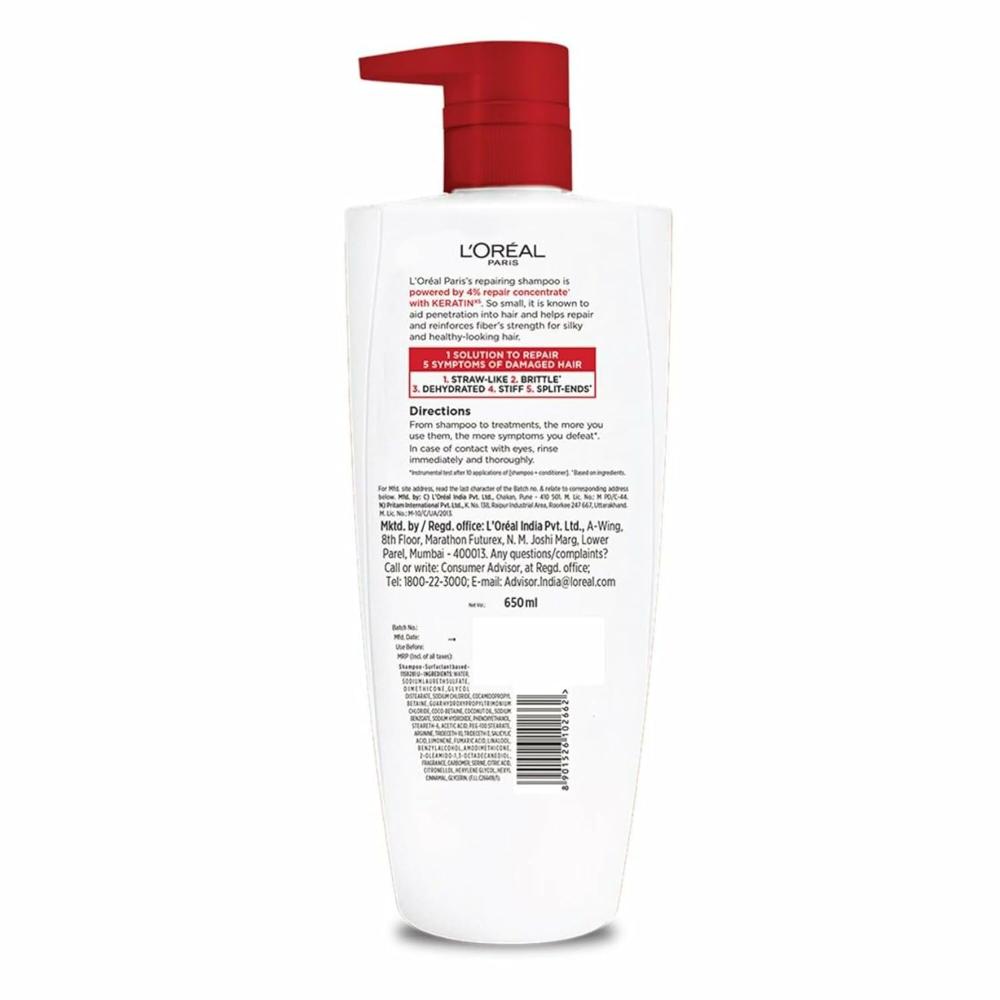 - Contents: 1x L’Oréal Paris Total Repair 5 Shampoo, For Damaged and Weak Hair, With Pro-Keratin + Ceramide, Volume: 650 ml