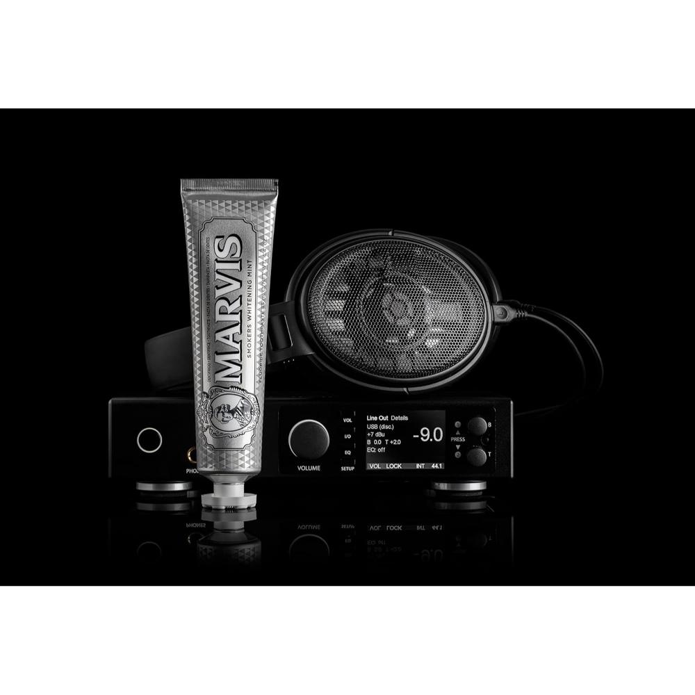 Marvis Smokers Whitening Mint is a rich and creamy toothpaste designed to whiten teeth and prevent tooth decay, tartar, and plaque while delivering a long-lasting cool mint freshness. Created with the original formula that undergoes a traditional Italian processing method which guarantees a dense, compact texture for maximum protection and an extremely sparkling white smile. This advanced luxury toothpaste eliminates stubborn discoloration caused by nicotine, tea, coffee, acidic foods, and red wine. Marvis Smokers Whitening Mint delivers an Arctic shiver sensation formed by the “cool” mint leaves that leave unforgettable freshness with chill vibes that last. This distinctive toothpaste with an elegantly sculpted cap comes in an eye-catching, display-worthy 85ml tube that adds a sense of luxury to every bathroom and a portable 25ml travel size that adds comfort and a spark of Florence to your vacation. Pair it with a Marvis holder for an even more striking display.